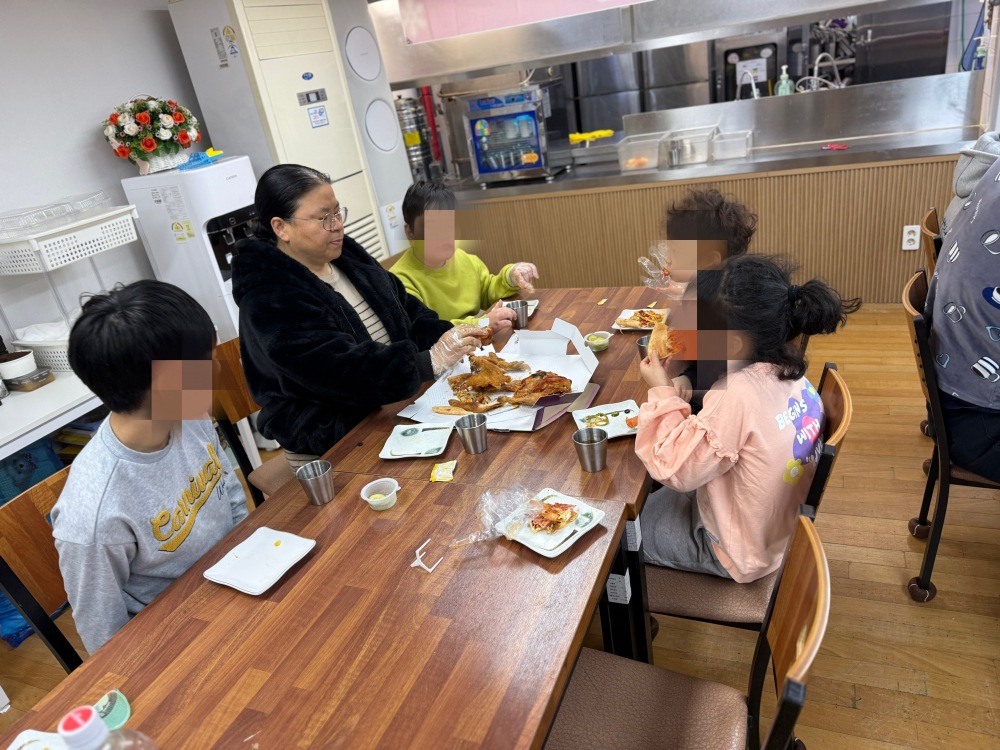 새마을운동 양주시 연합회 회원분들께서 후원해주신 피자와 치킨을 맛있게 나누어 먹고,